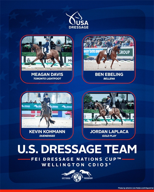 Lexington, Ky. – US Equestrian is pleased to announce the combinations selected to represent The Dutta Corp. U.S. Dressage Team at the FEI Dressage Nations Cup™ USA CDIO3* during the Adequan® Global Dressage Festival in Wellington, Fla., from March 18-22, 2026. This will be the first team outing of the 2026 competition season for the Dutta Corp. U.S. Dressage Team who will be led by Chef d’Equipe Christine Traurig and Team Leader Laura Roberts.