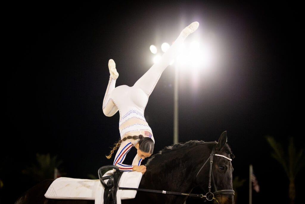Kylynn Ghafouri, also US Equestrian’s 2025 Vaulter of the Year, gave a beautiful vaulting performance. Photo by DIHP/Megan Giese Media